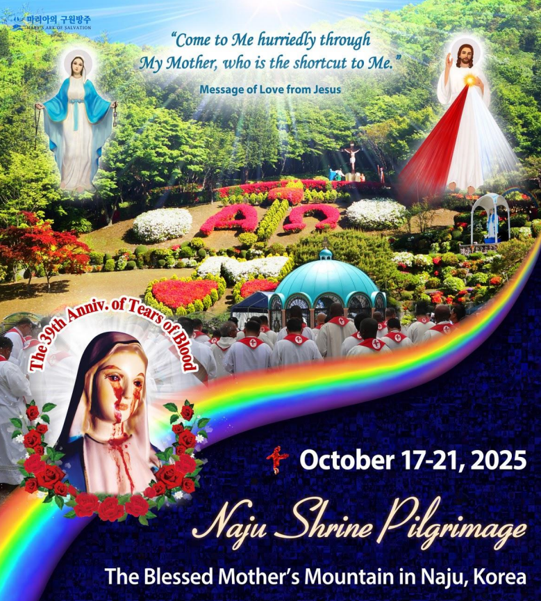 ๐ "If Naju is officially approved, the Church threatened by heresies and infected with errors will be reformed, the clergy and religious will be sanctified, it will become a place of salvation where sinners repent, and even numerous sinners who are walking toward hell will be saved. Therefore, make haste to help Naju be officially approved." (Message of Love from Jesus on October 19, 2006) ๐