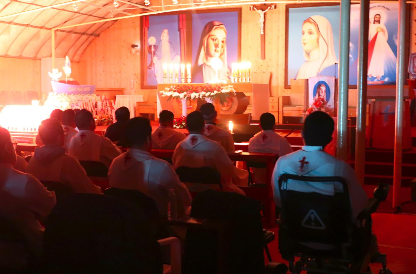 Priests and pilgrims devotedly taking part in the Five Spiritualities Programs