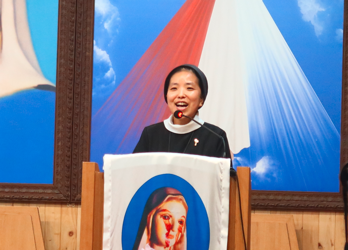 In the depths of her redemptive suffering, Julia Kim pours out the strength of love upon the clergy and pilgrims who have come to commemorate this day.